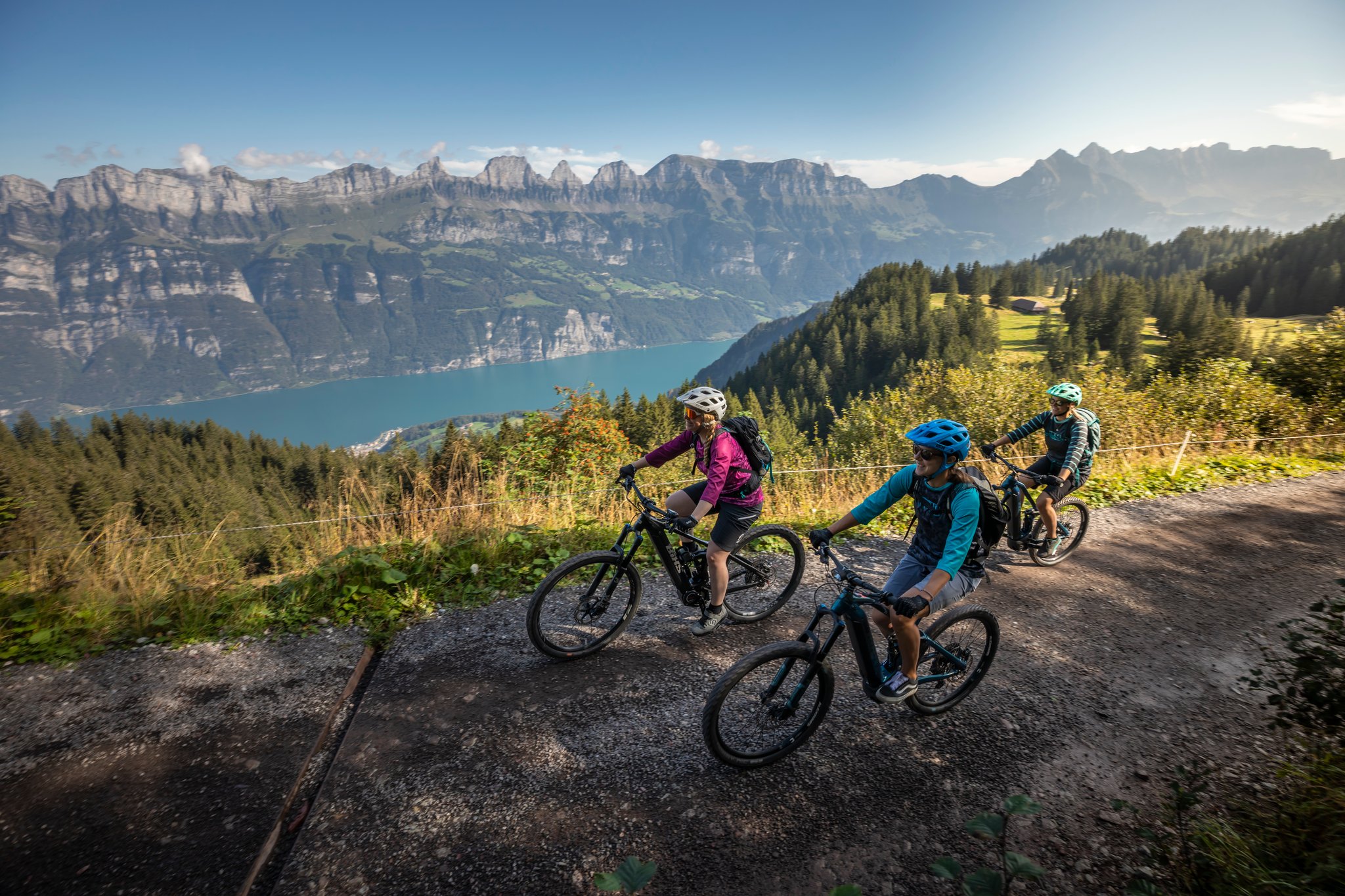 Kombinieren Sie eine genussvolle E-Bike-/Mountainbike-Tour am Flumserberg, bei welcher Sie einen unvergesslichen Ausblick auf den Walensee, die Bergkette Churfirsten sowie ins Spitzmeilengebiet geniessen können, mit kulinarischen Stopps in drei verschiedenen Restaurants für Vorspeise, Hauptgang und Dessert.