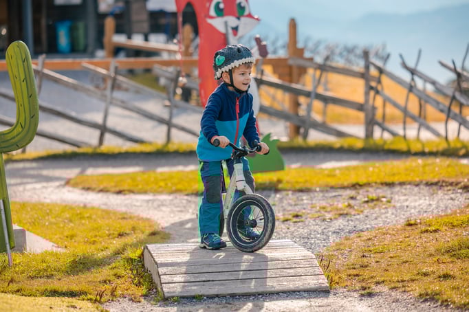 Der Laufrädli-Parcours ergänzt den Spielplatz direkt beim Bergrestaurant Prodalp. Laufrädli von Mustang sowie witzige Kinderhelme stehen zur Verfügung. Der einfache Parcours bereitet den miniBikern eine Menge Spass und schult gleichzeitig das Gleichgewicht. Ganz nach dem Motto: Früh übt sich...
